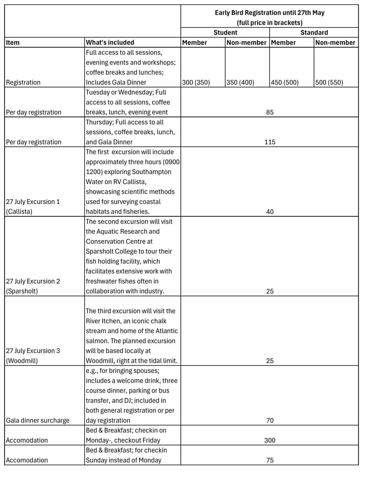 Registration opens: 26 January 2026 (This will open asap! We are just finalizing the online registration system. See costs in the table above.)